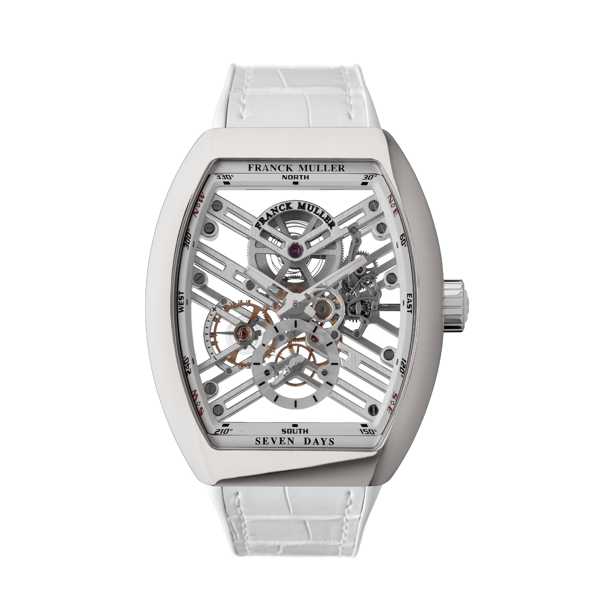 ヴァンガード 7デイズ パワーリザーブ スケルトンは、「FRANCK MULLER」が満を持して開発した至極の手巻きムーブメント「Caliber 1702」を、さらに、文字通り切磋琢磨して完成させた、先進ウォッチメゾンとしてのプライドを具現したプロダクトです。