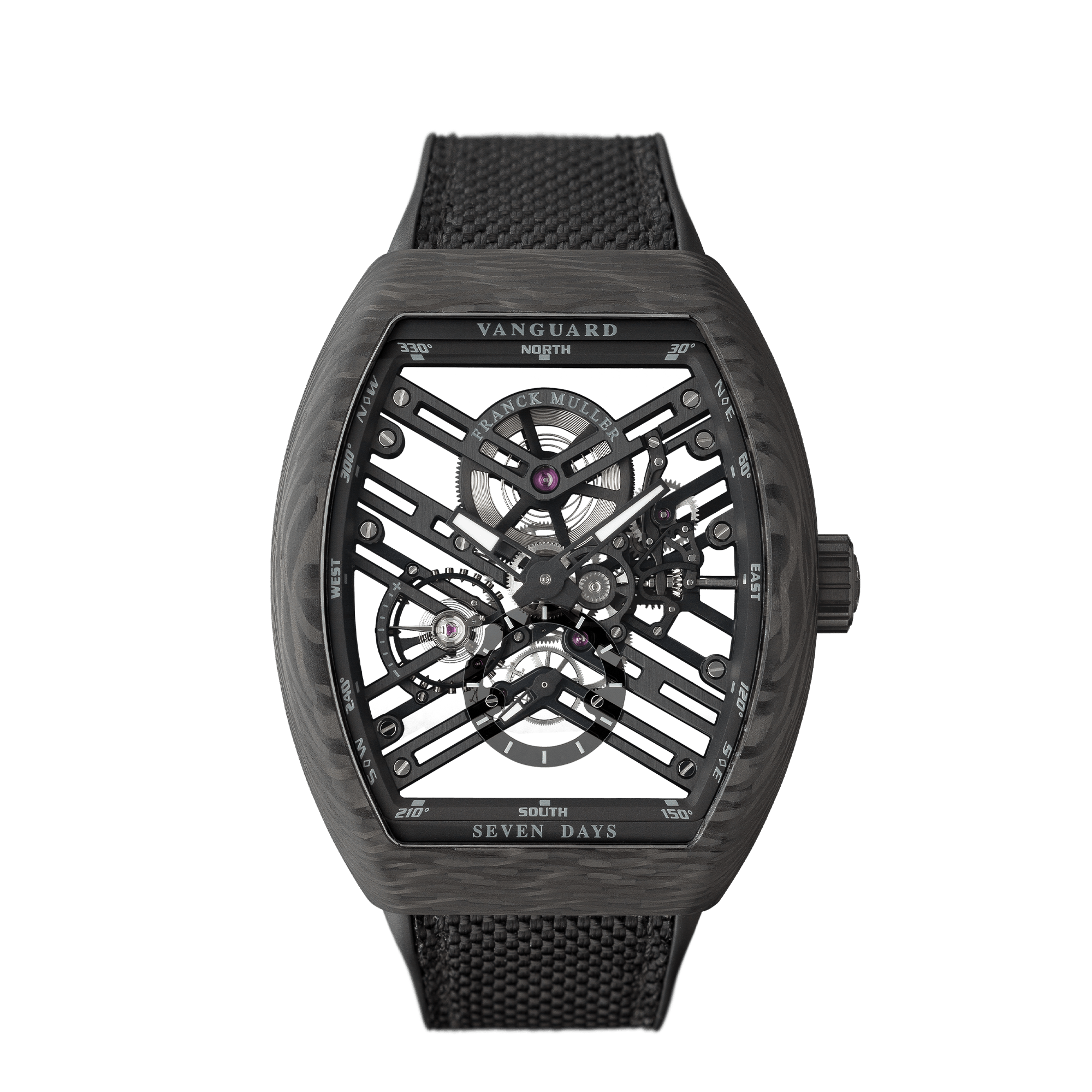 ヴァンガード 7デイズ パワーリザーブ スケルトンは、「FRANCK MULLER」が満を持して開発した至極の手巻きムーブメント「Caliber 1702」を、さらに、文字通り切磋琢磨して完成させた、先進ウォッチメゾンとしてのプライドを具現したプロダクトです。