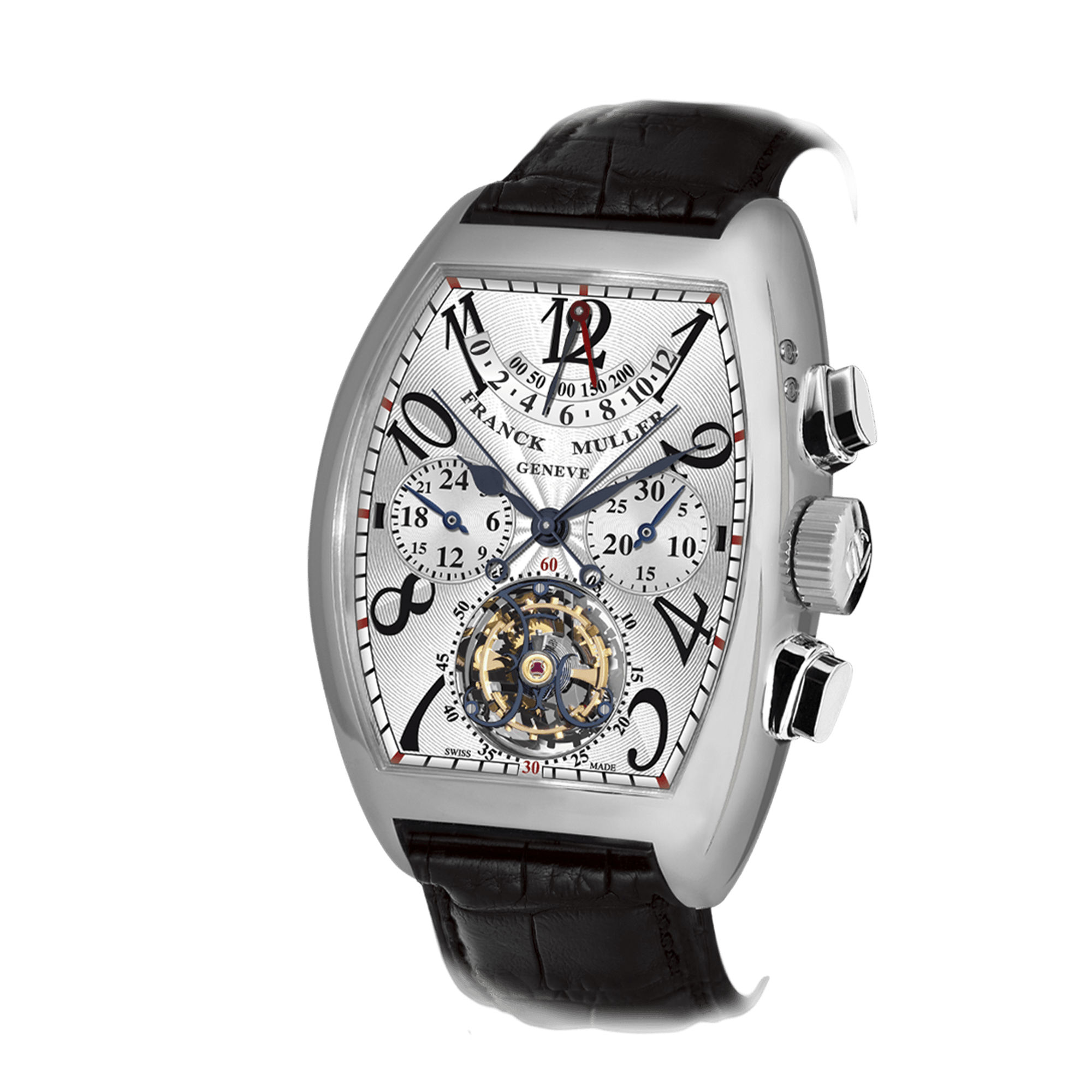 Flying tourbillon, split-second chronograph, power reserve (hours & days) at 12 o'clock, 30-minute counter at 3 o'clock, 24-hour counter at 9 o'clock