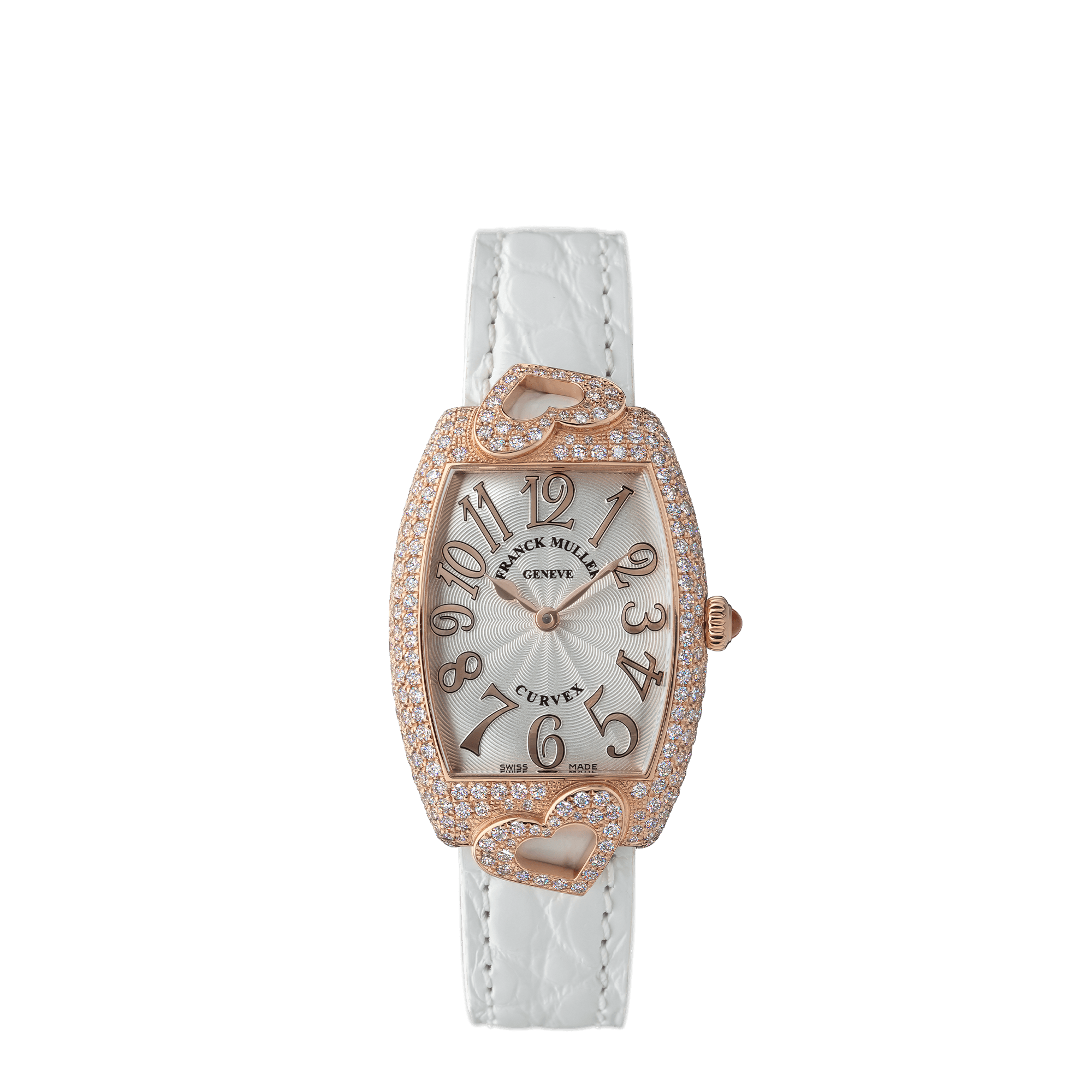 フランク ミュラーの象徴ともいえる三次元曲線を描く「トノウ カーベックス」の上下には、ハートが印象的に配されています。ハートは ダイヤモンドで彩られ、 ケースと同じ カラーに彩色されたビザン数字と針が、エレガンスを引き立てます 。 ケースにまでダイヤモンドを配した華やかなモデルと、ピンクゴールドの無垢な表情が艶やかな2種類よりお選びいただけます。 温もりと輝きをあわせもつような、大切な人との愛しい時間に 「トノウ カーベックス クー レリーフ 」は 寄り添います。