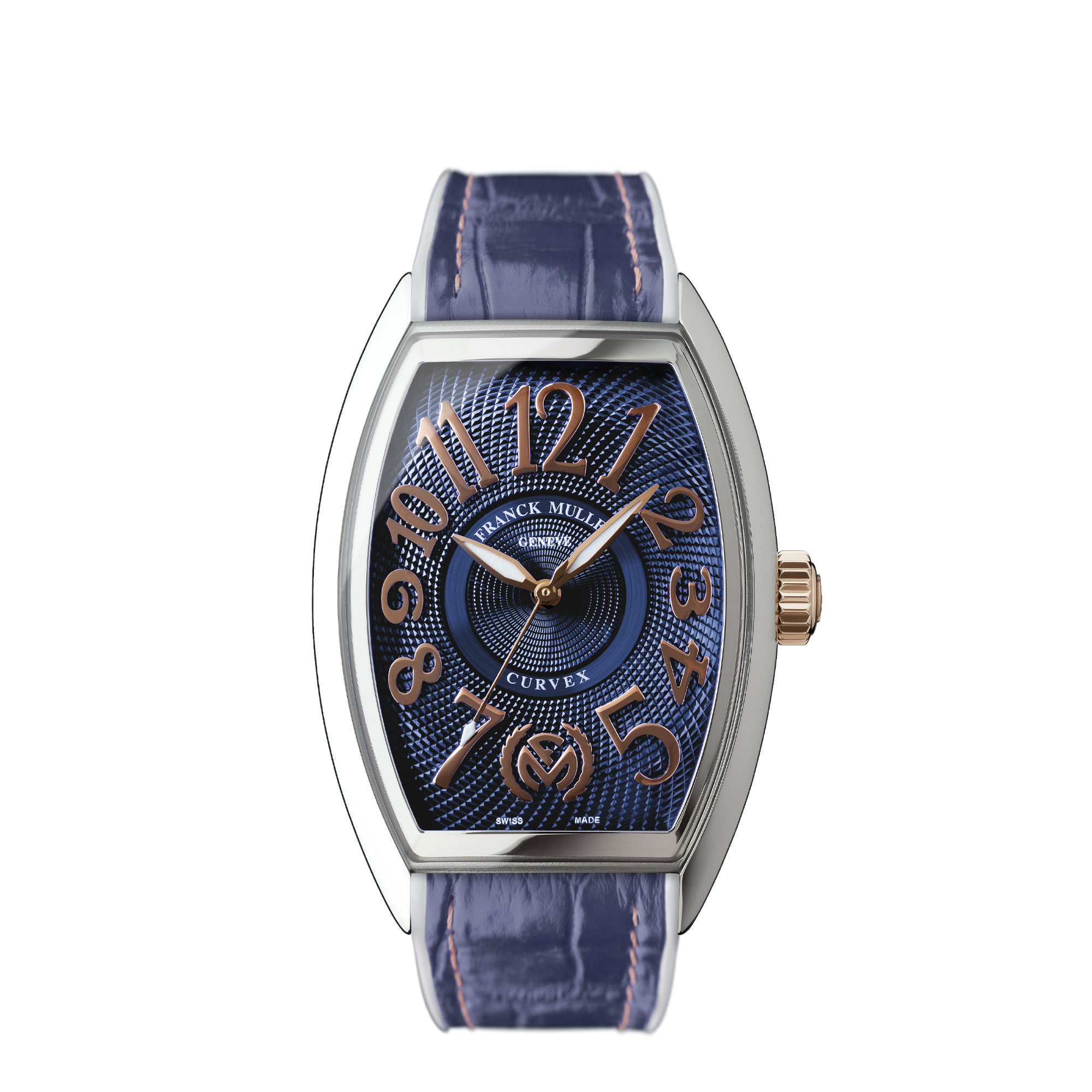 「グランド カーベックス」から登場した限定モデルは、リュウズ、ストラップをはじめ細部の意匠に至るまで再設計されており、さらに6時位置のインデックスには特別な意匠を備えています。通常モデルではビザン数字の「6」が配される位置に、本モデルでは“FM”エンブレムを配置。これは世界限定モデルのみに許されたディテールであり、「グランド カーベックス」の中でも特別な存在であることを象徴しています。